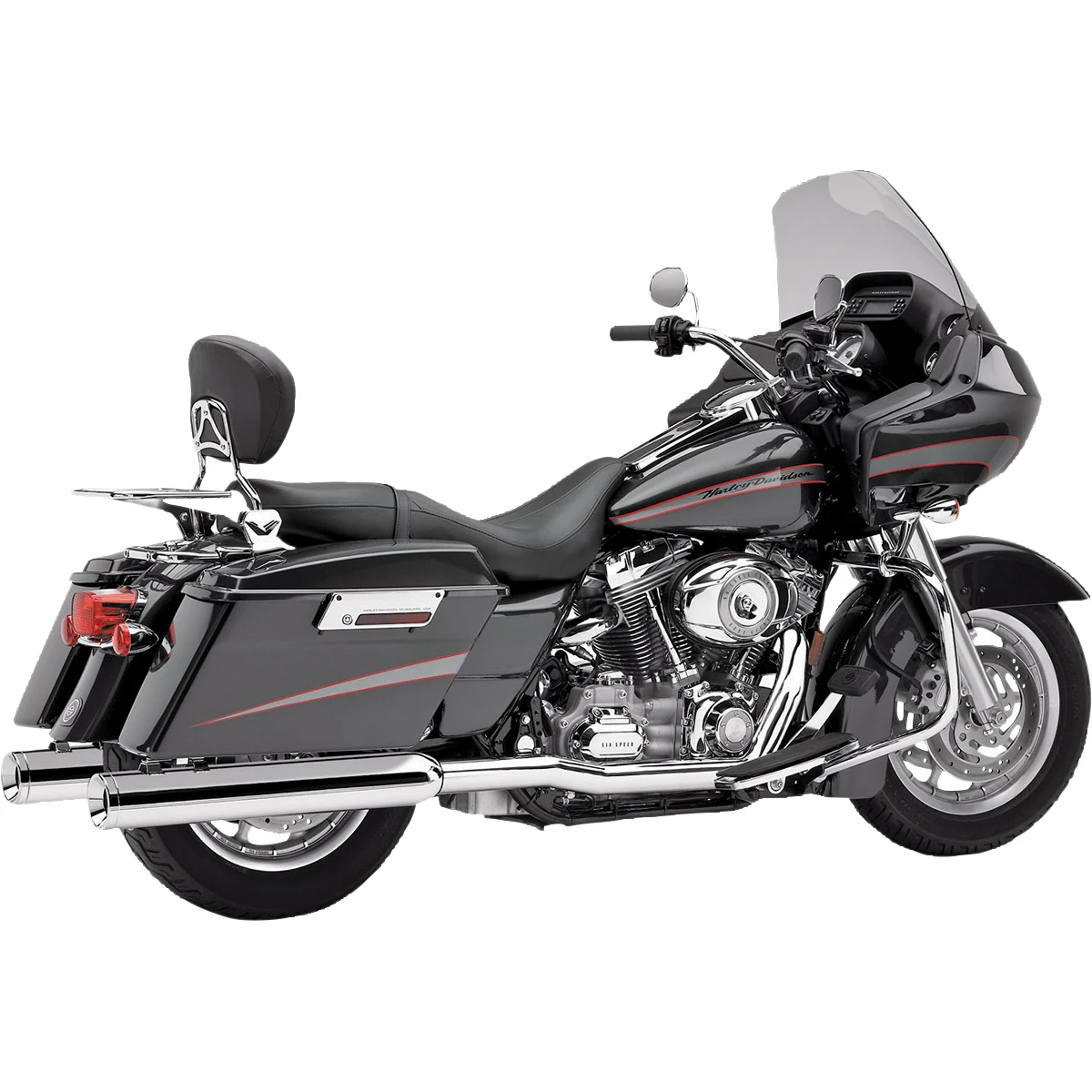 Want performance, sound, style-and comfort? Cobra’s True Dual Head Pipes feature individual 1-3/4″ pipes for increased exhaust flow, giving your Harley-Davidson Touring motorcycle optimal torque and power. But the large 2-1/2″ one-piece heat shields also provide proportionality and seamless flow to the V-Twin engine, keeping more heat off your legs for a cooler ride. The system includes head pipes, heat shields, and mounting hardware.